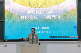 武昕宇进行了“爱校荣校、向新而行”主题教育。她说,我们即将迎来学校建校122校庆日,各项校庆活动精彩纷呈。为培育学生爱校情怀和荣校热情,推动以“诚朴勤仁”为核心的南农精神,在新时代、新校区、新起点、新征程中传承实践,她以自己的学习与工作经历为切入点,用主楼大草坪建植过程中的故事,展现草业学院师生与南农、与学院的深厚情谊,鼓励同学们以学校和学院为荣,成为学校与学院故事的讲述人;展现学院“育草育人、知行合一”的精神,希望同学们在本次教育教学审核评估中充分发扬主人翁意识,从做实在事、写祝福语、记校园景三件事入手,做到爱校荣校、向新而行。