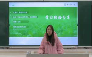 舒婷简要介绍了草坪科学与工程专业,详细介绍了学习资源获取、主动预习和重点标记等学习方法。她认为要制定每日学习计划,将课程学习、作业完成、复习预习以及阅读拓展等内容合理安排到每一天,避免任务堆积影响学习效果。