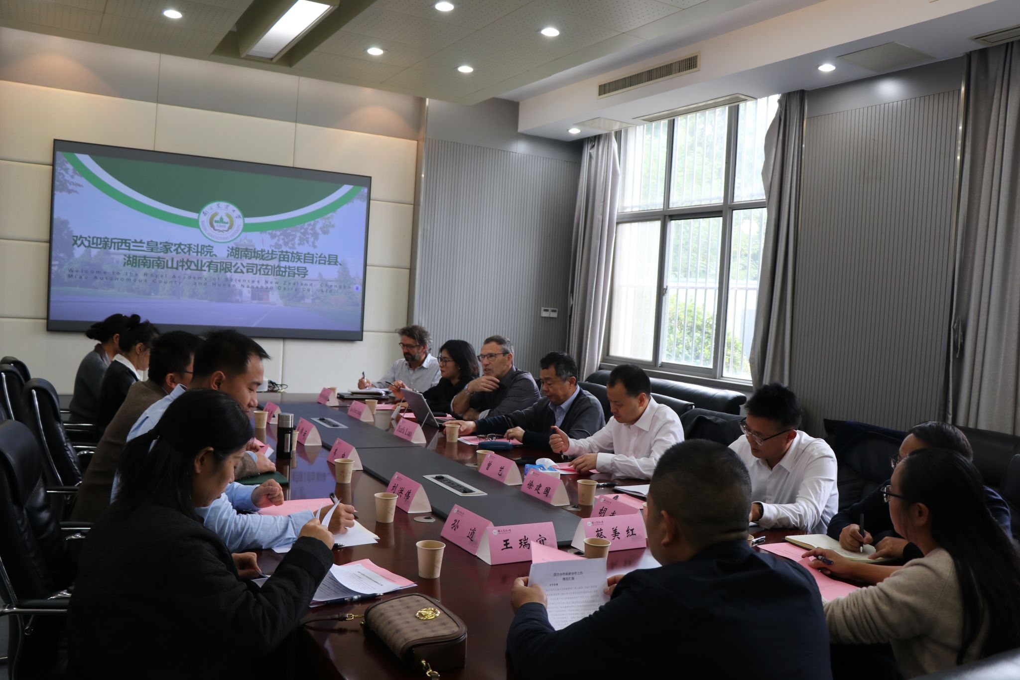 10月31日上午,新西兰皇家农业科学院专家David Robert Stevens、Warren McGeorge King、Jiafa Luo,中共城步苗族自治县委副书记曾艺,以及湖南省南山种畜牧草良种繁殖场党委书记徐建国等一行到访草业学院,围绕产学研深度融合、南山牧场可持续发展和退化草地修复等议题开展调研交流。座谈会由草业学院副院长(主持工作)韦中主持。