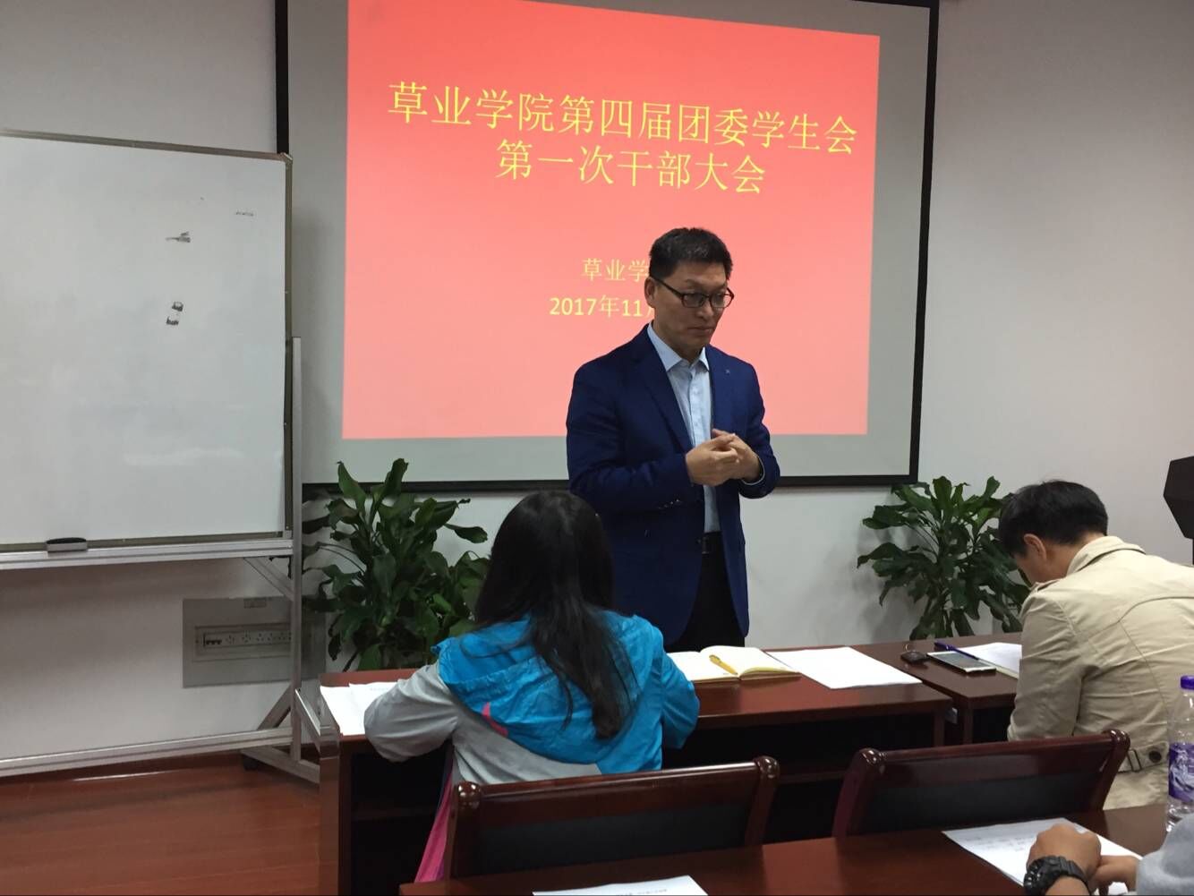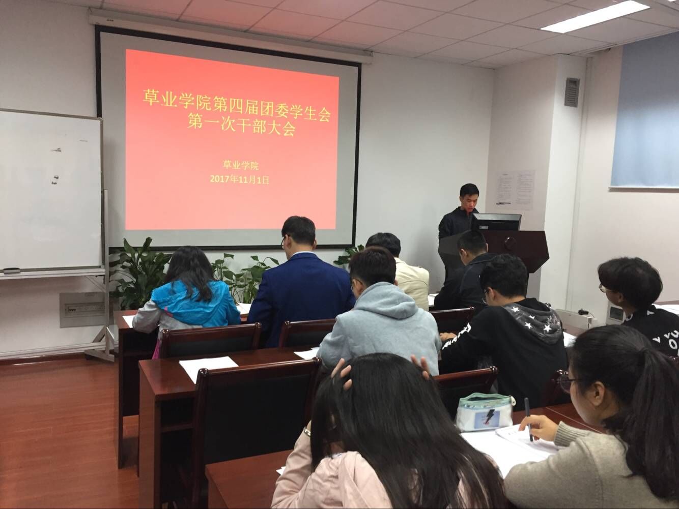 2017年11月1 日晚八点五十分,我院学生会在理科南楼F304草业学院会议室召开本学期第一次全体会议。 出席人员有草业学院副院长、辅导员,草业学院团委学生会主席团、各部门部长、各部门副部长及2017级、2016级各班全体班干部、全体班团支部干部。