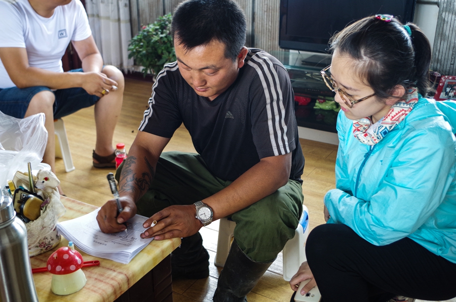 在挨家挨户的走访过程中,我们发现现实跟想象是不一样的,由于各位牧民的生活质量和受教育程度的不同,为问卷填写增加了很大难度。于是,我们采取在聊天中找细节的方法,将书面化的语言变成闲聊中的琐碎问题,逐步深入,这样既在聊天中拉近彼此间的距离,又能够高效完成调查问卷。