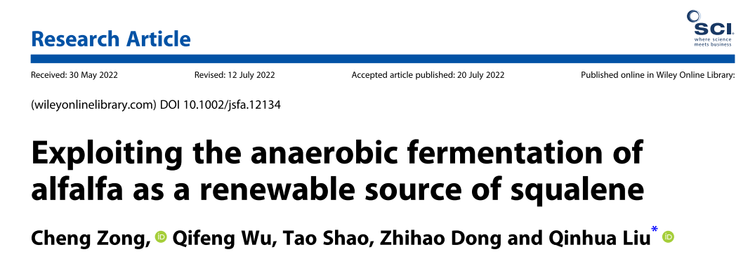 近期,草业学院邵涛团队分别在Journal of Hazardous Materials(5年影响因子12.984)和 Journal of the Science of Food and Agriculture(5年影响因子4.096)在线发表了题为“Recycling deteriorated silage to remove hazardous mycotoxins and produce a value-added product”和“Exploiting the anaerobic fermentation of alfalfa as a renewable source of squalene”的研究性论文。