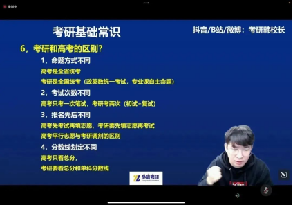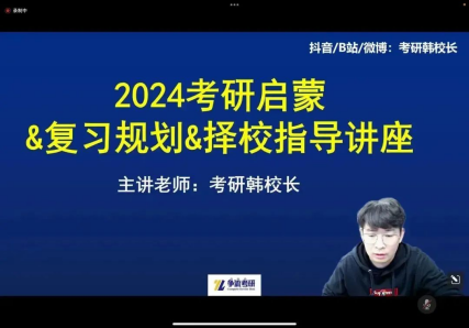 韩校长从2024考研形势分析入手,介绍了考研基础常识和五维四段教学法,为同学们讲解了考研全流程的复习规划。
