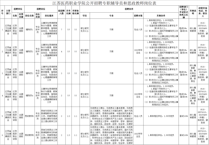 江苏医药职业学院人力资源处负责回答此次招聘政策咨询。