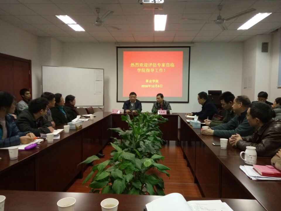 2016年12月6日下午,中国农业大学副校长王涛教授、湖南大学唐文谦老师作为本科教学审核评估专家考察草业学院,参观了草业学院实验室并做报告。草业学院党总支书记李俊龙,副书记、副院长高务龙,副院长徐彬及全院教师和研究生们参加了会议。李俊龙主持了会议。