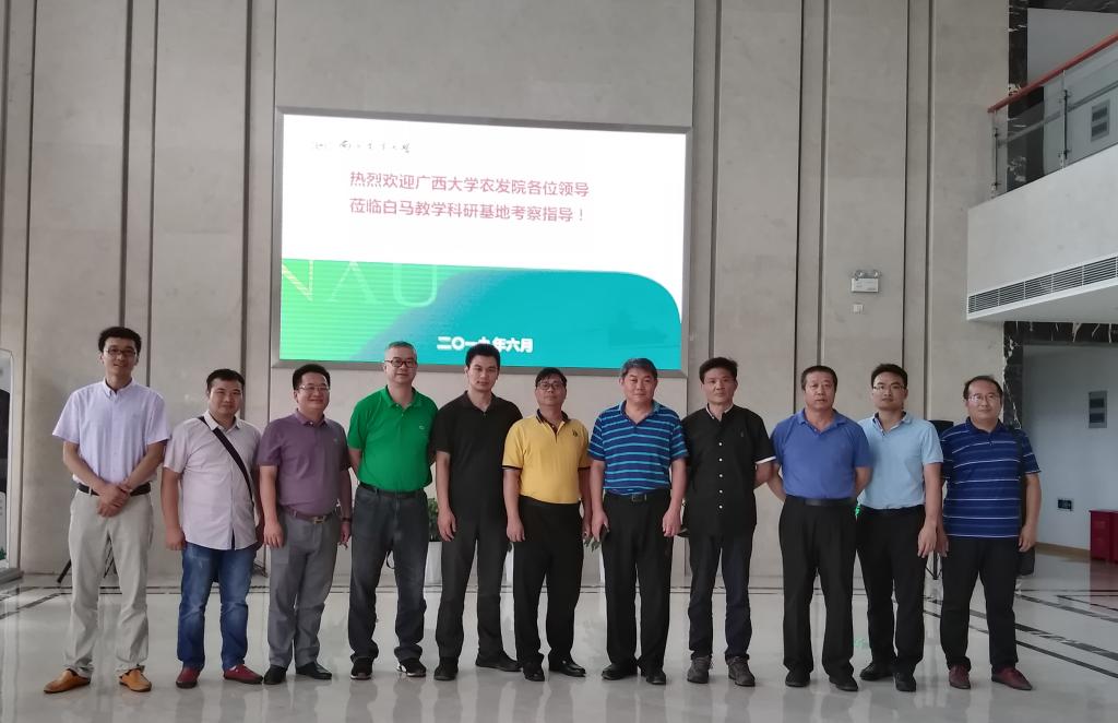 6月30日上午,广西大学农发院兼农科基地办张国宏书记、何山红副院长、汤昭主任和广西汇创牧业有限公司邱进宝总经理、陈伟江总经理助理一行5人应草业学院邀请访问我校,草业学院徐彬副院长、邵涛教授、杨志民教授、刘信宝老师和学校白马办陈礼柱主任、董淑凯科长参加了调研会议,并共同参观了白马教学科研基地。