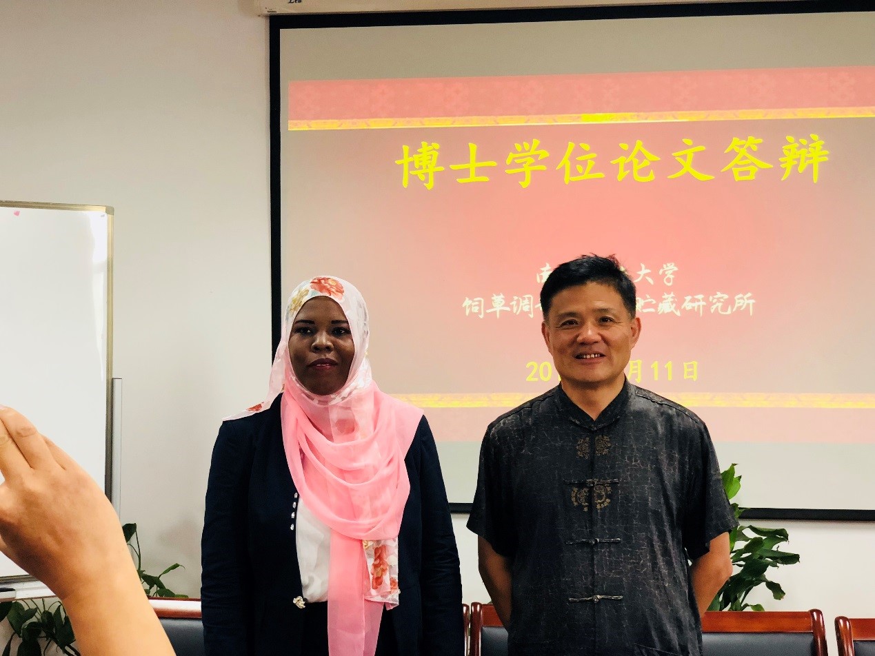 AZIZZA 来自苏丹,于2014年9月入学,进入我院草学一级学科博士点学习,经过四年的努力,顺利完成博士课题的研究,并以第一作者发表SCI论文3篇。答辩委员会一致认为AZIZZA的博士论文研究内容深入实践,开展了具有一定创新意义的科学研究,取得了较显著的理论和实践成果。AZIZZA博士学位论文答辩会的顺利举行是我院国际博士人才培养项目的首个成功案例,为我院今后进一步开展与“一带一路”的国家合作打下了良好的基础。