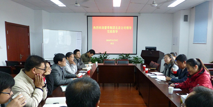 2016年11月9日上午,蒙草集团北京区域事业部郭建梅总经理、蒙草集团北京蒙草节水园林科技有限公司、京津冀乡土植物研究院李建胜院长等一行4人到草业学院访问座谈。草业学院高务龙、徐彬副院长,杨志民教授,杨高文、胡健、任海彦老师,生命科学学院蔡庆生教授,资源与环境科学学院赵耕毛教授、梁明祥副教授、科学研究院产学研合作处科技开发科邵存林科长参加了座谈会。高务龙主持了座谈会。