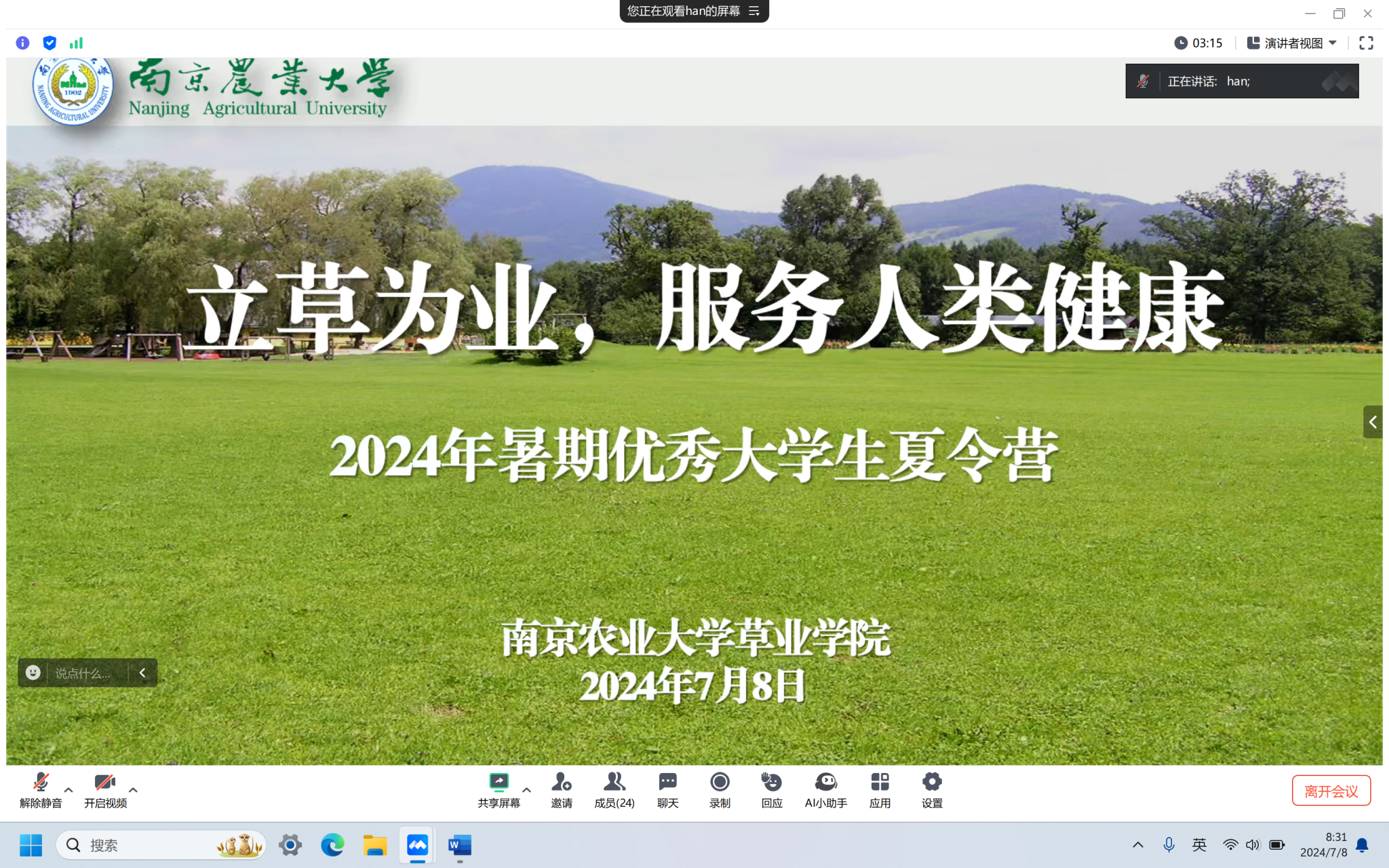 为进一步提升大学生对草学科研领域的认识和兴趣,鼓励全国优秀大学生报考ios版雷竞技官网草业学院研究生,7月8日,我院成功举办了“立草为业,服务人类健康”暑期“云端夏令营”,吸引了来自全国各地的众多优秀大学生参与。本次活动由草业学院党委副书记韩立新主持开幕式。