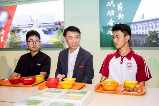 典礼结束后,校党委书记王春春与新生代表来到卫岗校区一食堂,师生围坐一堂,共享温馨的“开学第一餐”。餐桌上,大家一同品尝南农院士团队培育的金牌大米“宁香粳9号”,在袅袅饭香中畅谈交流,共话强国征程上新农人的使命担当。