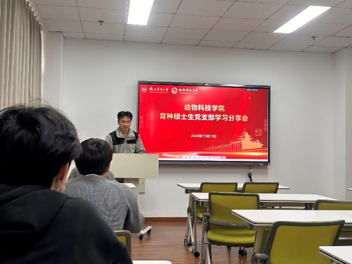 11月13日中午,动物育种硕士生党支部于理科楼B602召开支部会议开展了学习分享会,此次会议由支部副书记刘小雨主持。