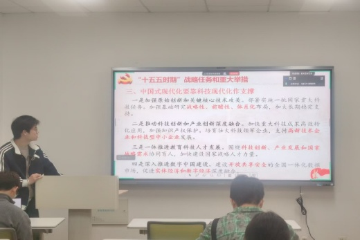 吴茂松、陶旭哲、郭明柯代表小组带领大家学习贯彻党的二十届四中全会精神,他们分别从会议的背景、主要内容、战略任务等方面进行了详细的阐述。首先吴茂松对全会的背景进行了深入解读,强调了会议在当前形势下的重要性。接着陶旭哲同志详细介绍了二十届四中全会的重要地位和主要内容,他鼓励支部成员要结合自身专业特点,积极思考如何在动物育种领域贯彻会议精神,为我国农业现代化贡献力量。最后,郭明柯同志号召支部党员响应全会,将党的二十届四中全会精神融入学习和生活中,引导新时代研究生在全面深化改革的浪潮中勇立潮头。