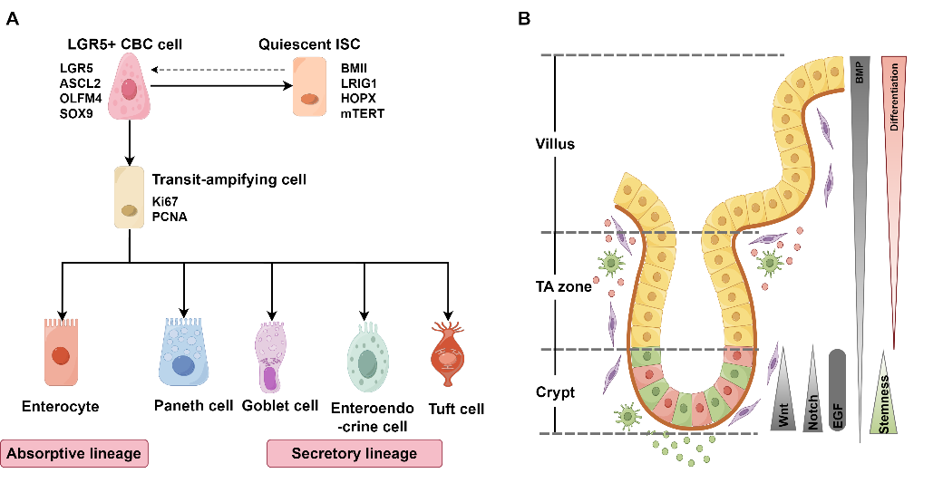 图1:小肠中的ISC及其分化后代