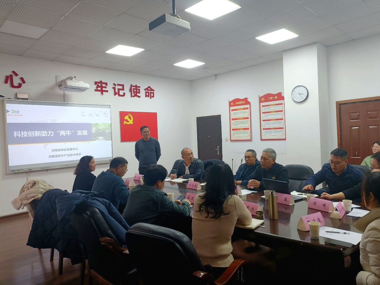 韩兆玉教授作为江苏省现代农业(奶牛)健康养殖创新团队岗位专家,首先介绍了江苏省现代农业(奶牛)产业技术体系建设情况并且对养牛教研室整体情况加以介绍。李莲副教授分享了农业农村部牛冷冻精液质量监督检验测试中心(南京)的概况以及相关业务情况。蔡亚非教授对江苏省奶牛DHI测定中心的运行情况做了简要介绍。河南省种业发展中心的闫磊科长介绍了河南省奶牛产业技术体系建设情况,并表示河南省奶牛体系建设的整体思路是要通过科技创新来引领奶业发展,重点以信息化为抓手,推动DHI测定工作、品种登记工作和生鲜乳第三方监测体系等。会上双方还就江苏省和河南省奶业发展面临的问题与挑战展开深入交流,就奶牛种业创新与新技术研究与推广合作达成初步协议。