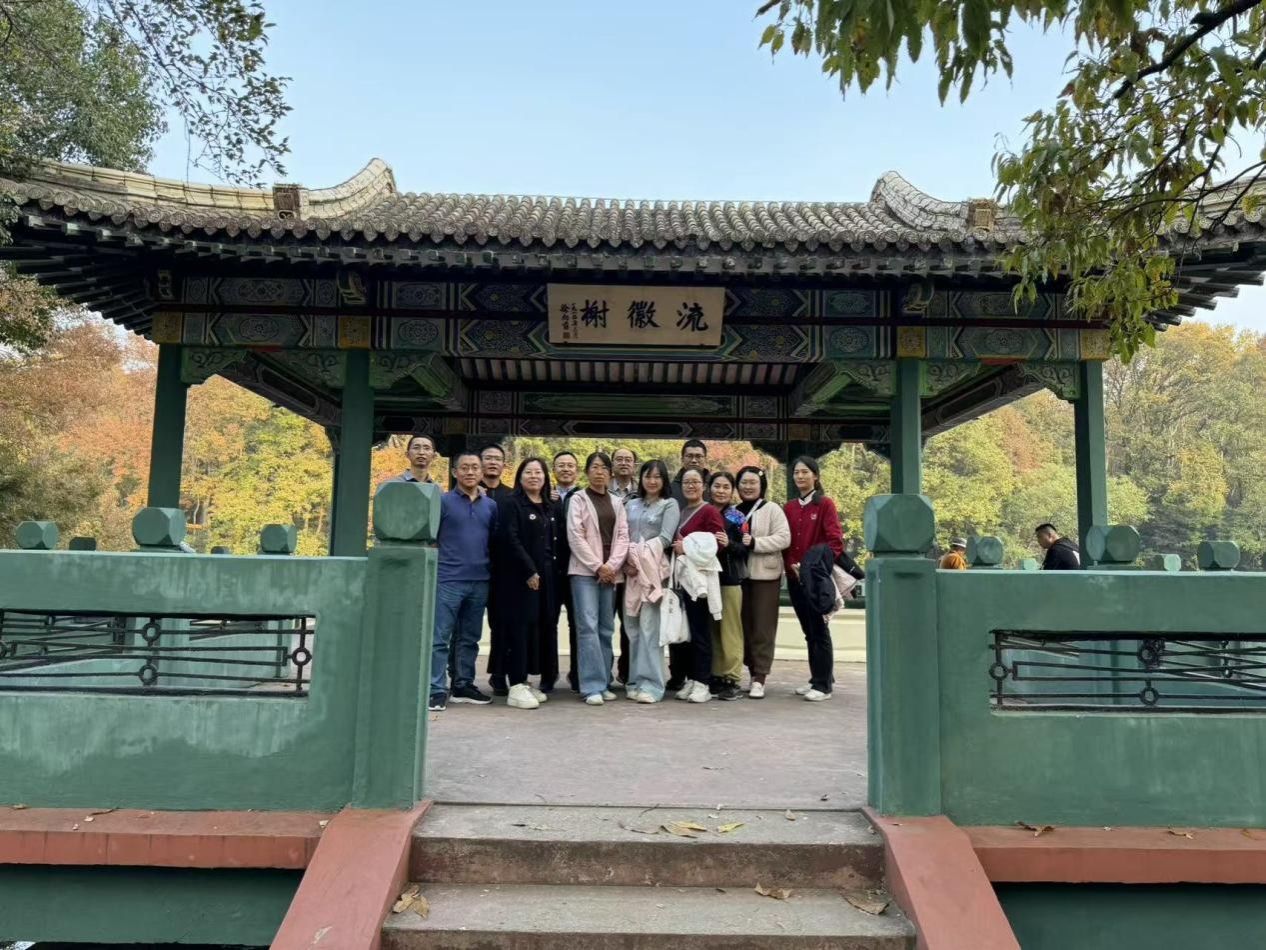 经过一段惬意的步行,全体参与教职工顺利抵达流徽榭。这里碧波荡漾,林木葱茏,与远处的景致构成一幅绝美的秋日画卷。在学院工会的组织下,大家整齐列队,以流徽榭的秀丽风光为背景,留下了一张充满活力与温情的集体合影,将此次绿道行的美好瞬间永久定格。合影过程中,大家笑容灿烂,充分展现了动物科技学院教职工积极向上、团结奋进的精神风貌。