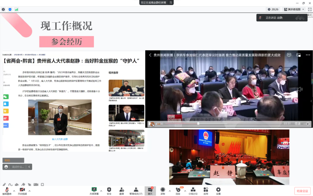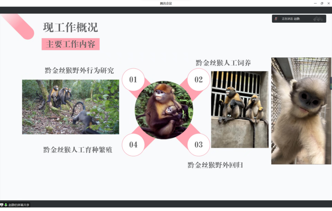 在交流分享会中,赵静主要对现工作概况和求职经历进行详细的介绍。她用生动的语言与美丽的图片向我们展示了她的工作内容,作为一名“守猴人”,她致力于保护、研究和宣传黔金丝猴,同时她也向我们分享了当选省人大代表并且为保护黔金丝猴发言的经历。这让同学们对她的工作有了深入的了解,为想要从事相关工作的同学们提供了经验,让同学们可以提前做好准备,在机会来临时能够牢牢抓住。