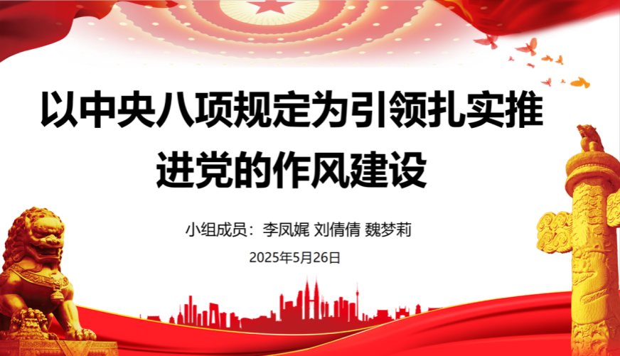 魏梦莉代表第七小组以“深悟中央八项规定精神 筑牢作风建设根基”为主题向大家强调了作为党员,要以赶考之心久久为功、化风成俗、养成习惯,坚持重点领域重点抓、突出问题突出抓、风腐同查一起抓,永远吹冲锋号,做到真管真严、敢管敢严、长管长严。