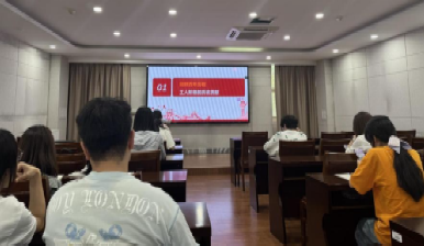 郝韵代表第八小组向大家分享了习近平总书记在庆祝中华全国总工会成立100周年暨全国劳动模范和先进工作者表彰大会上的讲话,郝韵强调要坚持党的领导,服务职工群众,深化改革创新,汇聚起团结奋斗的强大力量。