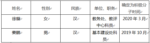 通过所在党支部一年以上的培养教育和考察,并经机关党委委员会审议通过,拟将徐璇、姜鹏同志列为党员发展对象;将周颖同志列为拟转正党员。