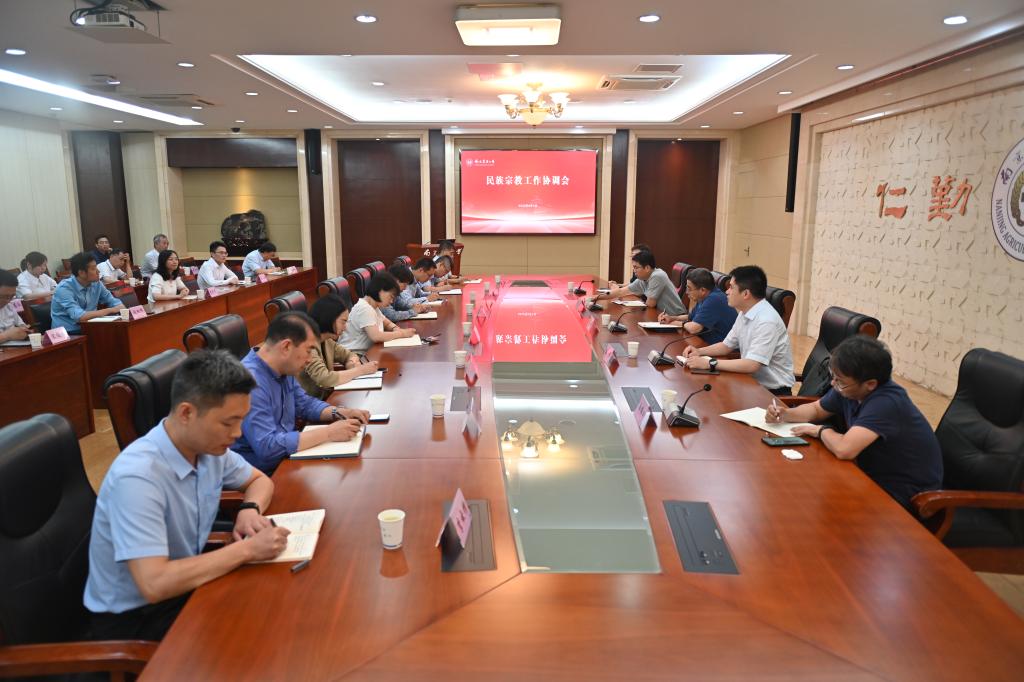6月7日下午,我校召开民族宗教工作会议。会议特邀南京市委统战部副部长、市民族宗教事务局党组书记、局长苏宇红作党的民族宗教政策专题报告。全体在宁校领导,民族宗教工作领导小组成员,各二级党组织书记、副书记、辅导员参加了会议。会前,校党委书记王春春、校长陈发棣和苏宇红局长进行了座谈交流。