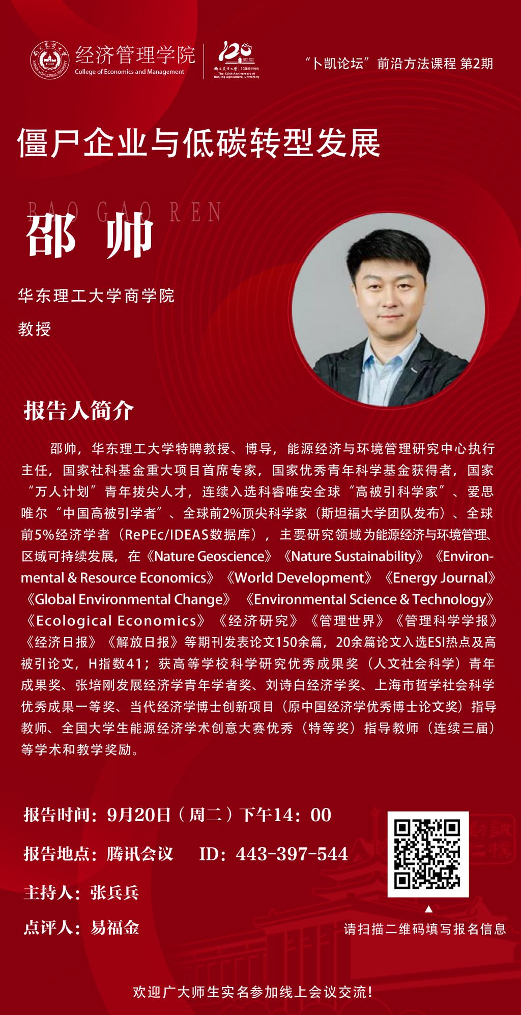 报告人:邵帅 华东理工大学商学院教授