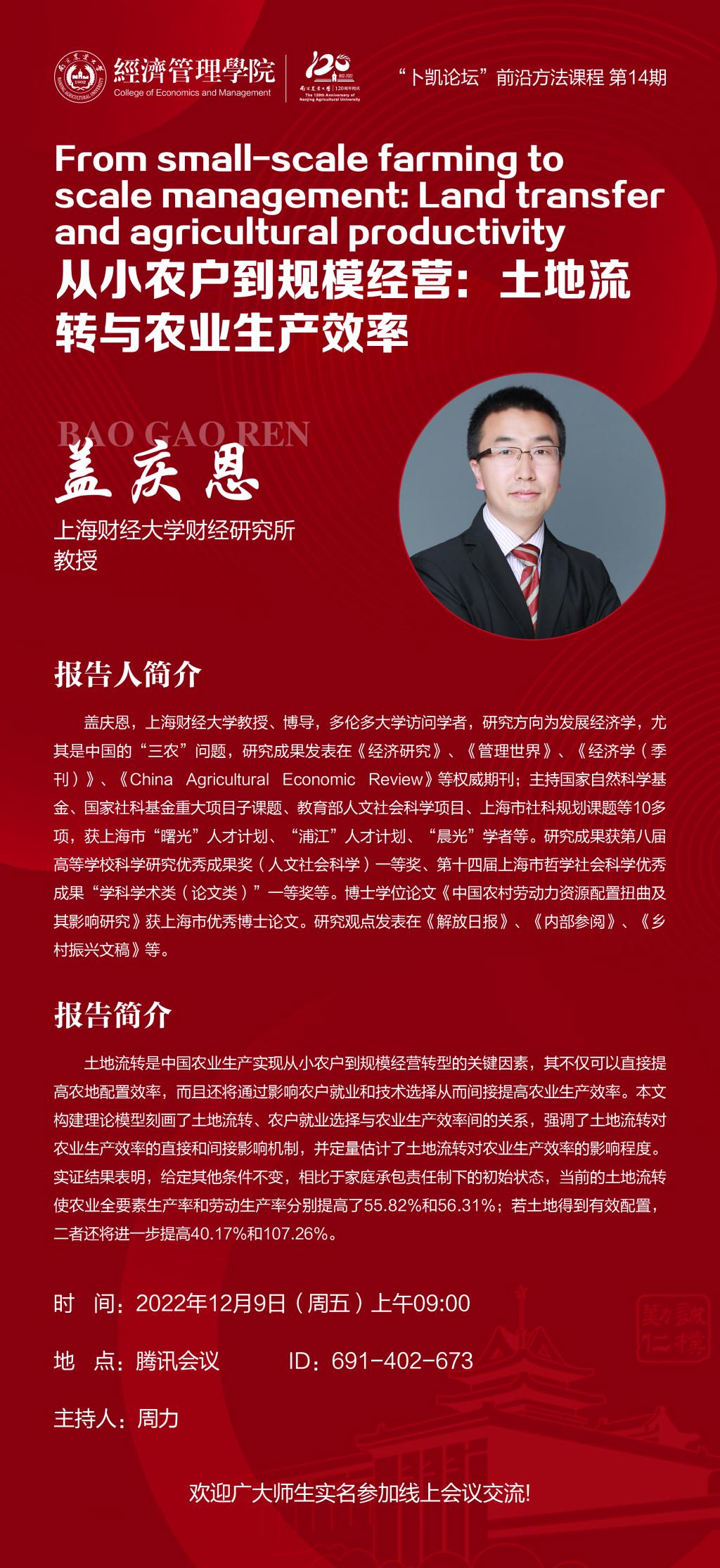 报告人:盖庆恩上海财经大学财经研究所教授