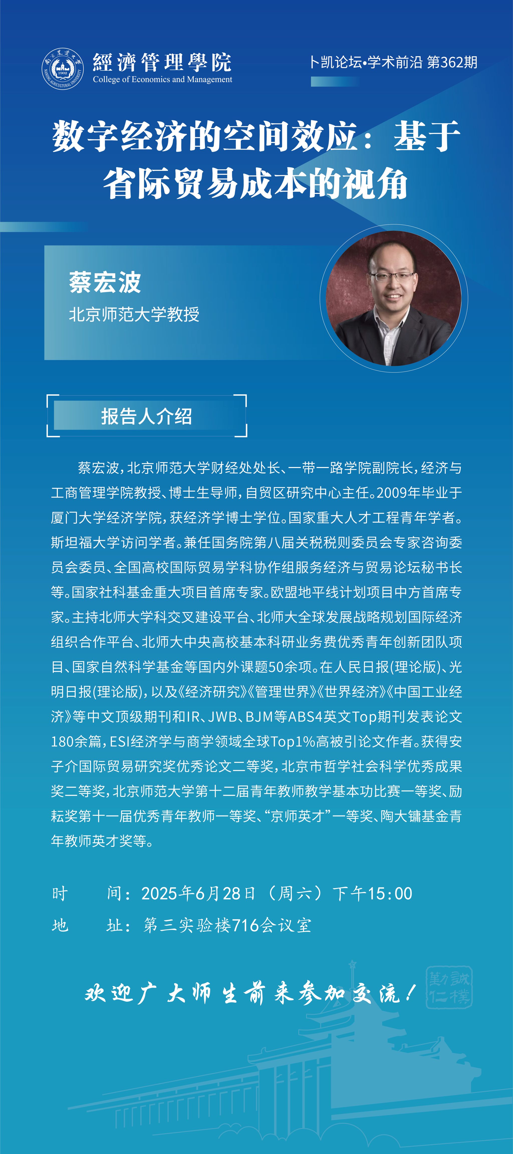 经济管理学院学术报告——卜凯论坛·学术前沿362期