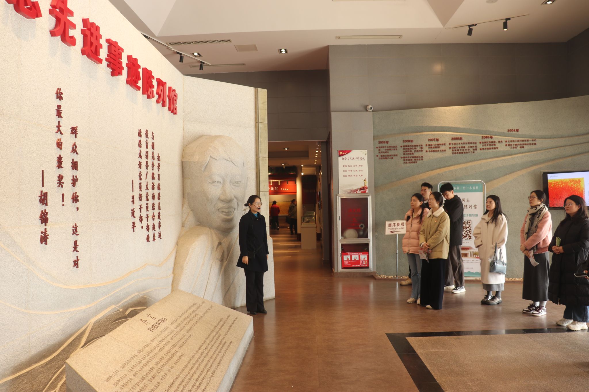在沈浩事迹陈列馆,一幅幅图片、一件件实物,展现了沈浩同志在小岗村的点点滴滴。其中褪色的笔记本,记录着“为徐家解决低保”“帮韩家修房顶”等琐碎民生事;破旧皮鞋,沾满修路工地泥土,见证他踏遍全村每寸土地;漆面斑驳的私家车,讲述着“私车公用、油费自掏”的无私奉献;三封红手印信件,连成“我们离不开沈书记”的血脉深情。沈浩的精神深深感染着在场的每一位学员。从沈浩同志身上,党员师生深刻感悟到为民奉献、服务群众的初心本色,在回望中坚定初心,在感悟中砥砺前行。