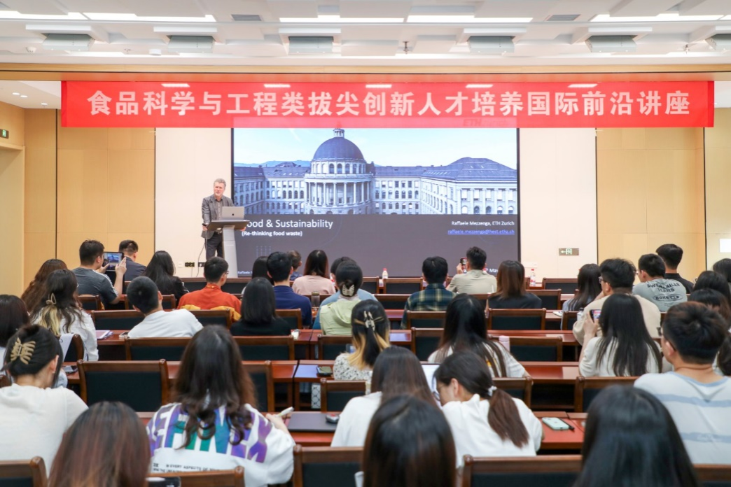 5月21日下午,食品科学与工程类拔尖创新人才培养国际前沿讲座在食品科技学院一楼报告厅举行。苏黎世联邦理工学院教授、食品营养健康研究所所长Raffaele Mezzenga应邀带来题为《重新思考食物蛋白质浪费》的讲座。本次讲座由食品科技学院副院长胡冰教授主持,学院师生120余人参加讲座。