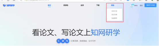 在研学平台首页右上角的帮助,即可查看使用手册、常见问题和视频教程。