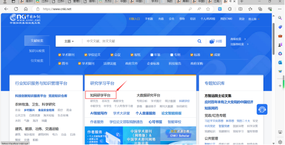 用浏览器打开中国知网网站,点击中间的“知网研学平台”,也可输入网址https://x.cnki.net (建议收藏该网址) 直接进入!