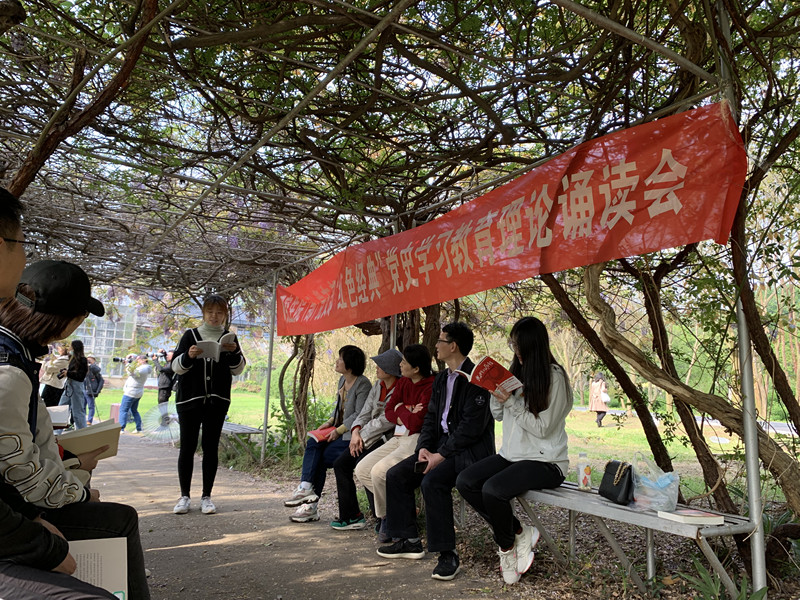 为践行初心使命,深入推进党史学习教育,4月15日下午,研究生院(部)党支部“红色经典”党史学习教育理论诵读会在中山植物园顺利举行。研究生院(部)11名党员和3名群众代表参与了此次诵读会。