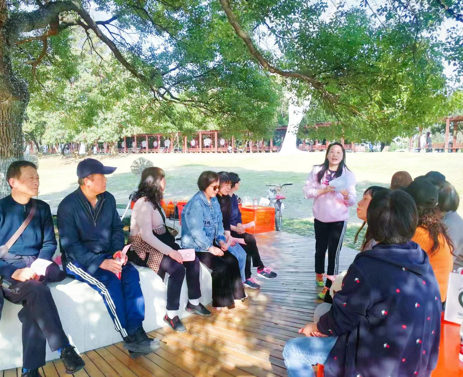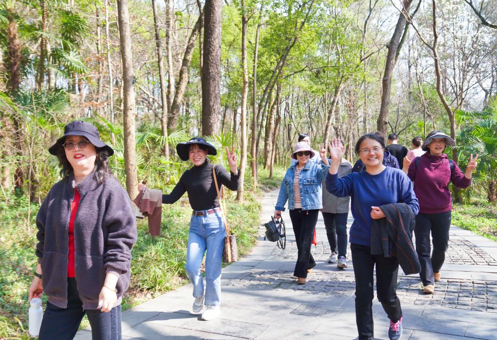一路上,管理员们呼吸着新鲜的空气,沐浴着和煦的阳光,甩开臂膀、迈开步伐,兴致昂扬的向前行进。走着走着,大家时而被眼前的美景吸引,驻足欣赏;时而热烈交流健步活动的愉悦感受。到达终点后,大家围坐一起举行了一场激烈的两会知识竞赛。