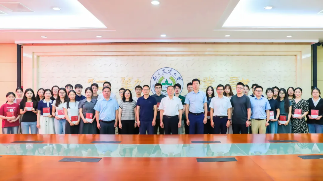刘营军向全体新入职辅导员赠书,勉励大家向书本求知、向实践求真,不断提升自己的干事本领,在加快建设教育强国和农业强国中贡献力量。
