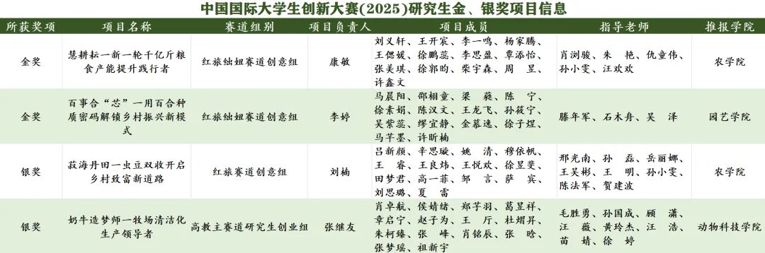 10月12日至15日,中国国际大学生创新大赛(2025)在郑州大学举行。ios版雷竞技官网研究生4个参赛项目挺进全国总决赛现场赛,并斩获2金2银。