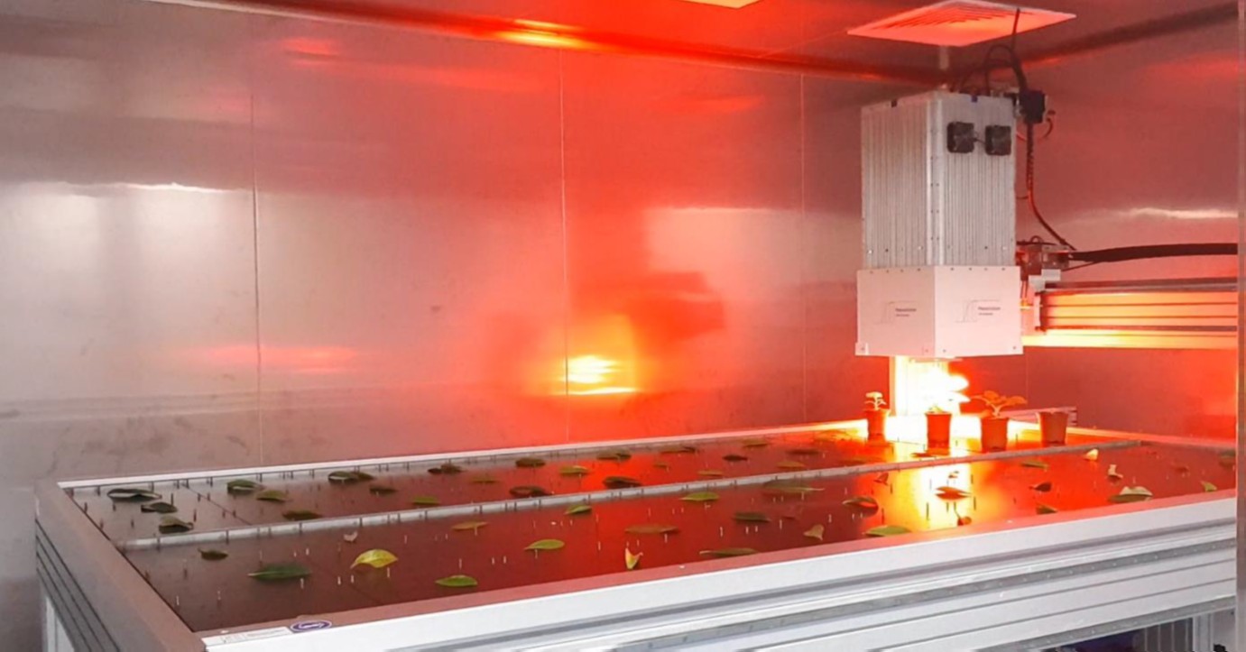 PhenoMate是一款对小型植物自动进行顶部高通量叶绿素荧光高清成像(600万像素像素)测量的系统,配备6种滤光片进行叶绿素荧光成像和反射光谱成像。能够获得用于表型分析的可见光成像、用于光合作用分析的叶绿素荧光成像、在近红外区的NIR反射成像RNIR、反映叶绿素含量的叶绿素指数成像RChl,以及反映花青素含量的花青素指数成像RAnt。