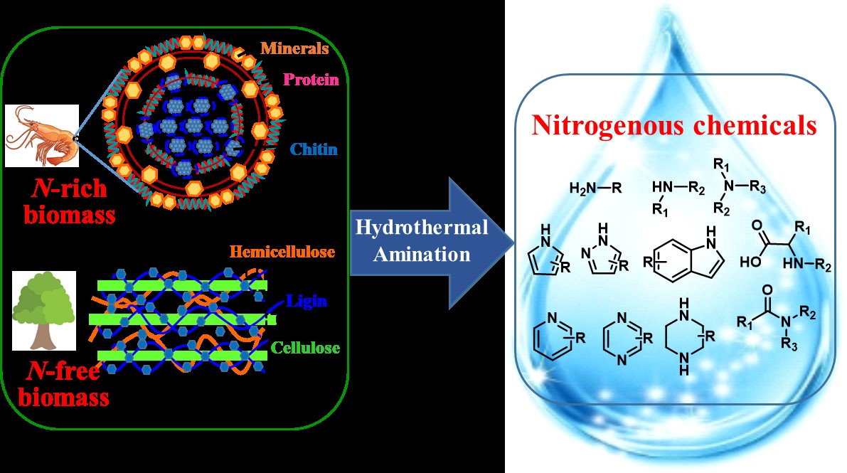 Conversion routes, processing strategies, state-of-the-art technical advances, challenges and perspectives in hydrothermal amination of N-rich biomass sources and N-free biomass feedstocks to nitrogenous chemicals.(水热胺化富氮和无氮生物质原料为含氮化学品的转化路线、加工策略、最新技术进展、挑战和前景。).