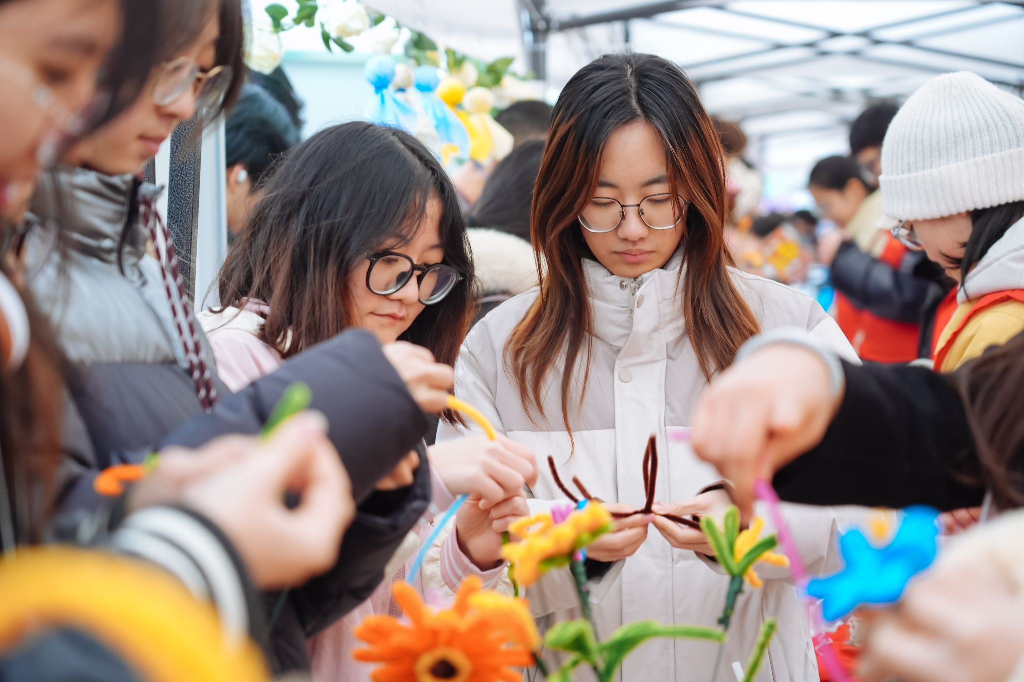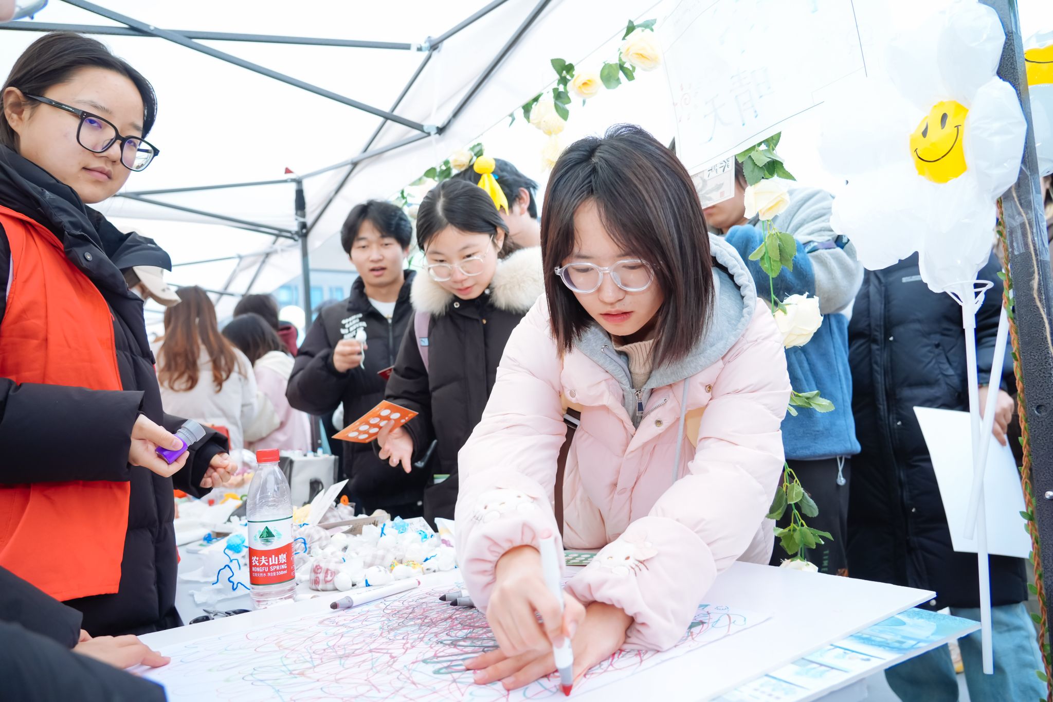在服务体验区,8个“我为师生办实事”项目——单车修理、剪纸体验、植物义诊、面塑体验、肩颈按摩、化妆体验、急救课堂、免费贴膜等,让大家体验到了“家门口”的贴心服务,更是吸引了众多师生驻足参展体验,受到了一致好评。