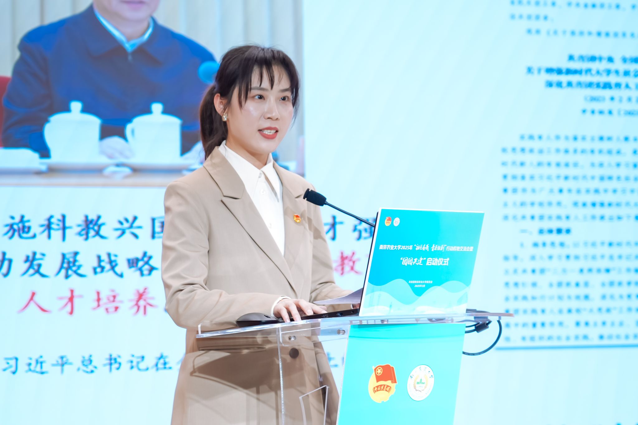 浦口团区委、江北新区泰山街道团工委、玄武区孝陵卫街道南农大社区、我校植物保护学院团委分别就校地共建项目、共建经验、成果成效进行了交流分享。