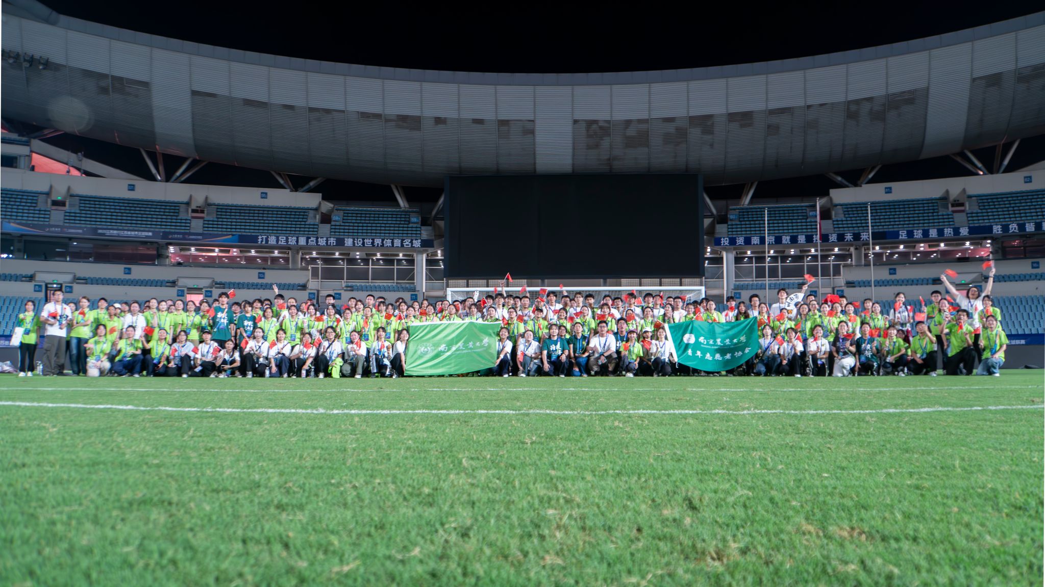 7月5日19时30分,2025江苏银行江苏省城市足球联赛(南京VS苏州)在南京奥体中心激情开赛。此场比赛吸引到60396名观众现场观赛,再次刷新“苏超”单场观众人数纪录。为保障赛事顺利进行,我校200名“小青苗”志愿者怀揣热情奔赴“苏超”赛场,在39℃的酷暑高温下,用汗水诠释南农青年的责任担当。