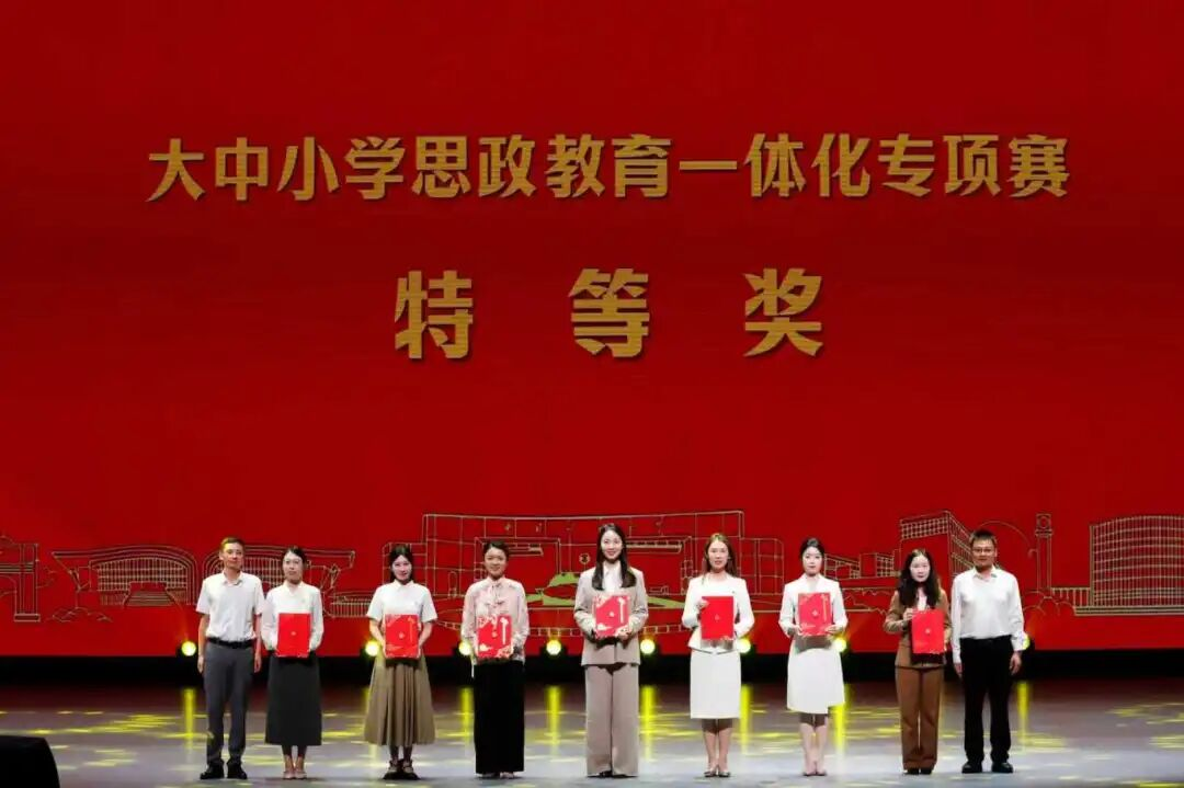 顾潇(左四)荣获大中小学思政教育一体化赛道特等奖
