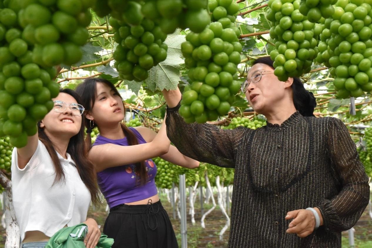 五是促进生态产品价值实现,引导学生走进田园,感受绿色经济所带来的生态效益,关注生态农业发展前沿动态,构筑可持续发展方案,为实现生态与经济协调发展贡献智慧与力量。金融学院实践团前往江苏省无锡市阳山镇蜜桃村,通过实地调研、采访农户、亲身体验等形式学习阳山水蜜桃产业的市场化路径,与工作人员探讨当地多元化生态保护机制,探索生态资源与市场需求的对接途径,以实际行动推进生态产品价值实现成效落地。