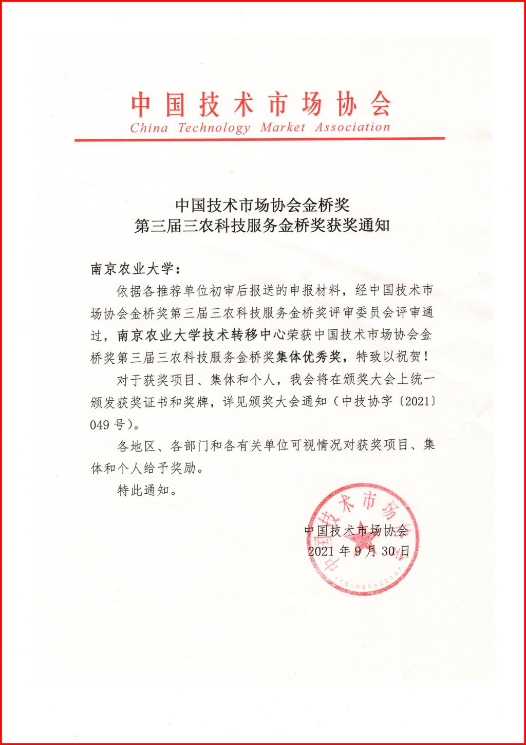 “十四五”以来,我校深入贯彻落实国家和部委技术转移转化政策精神与要求,积极服务国家战略行动,建立健全技术转移转化机制政策,技术转移转化工作成效显著。十四五以来,共计签订技术合同两千余项,合同额8亿元,被认定为江苏省和南京市技术产权交易市场技术经理人事务所;建立技术转移分中心20个,共建产业研究院和产学研合作示范基地(平台)62个;成立由157家企业组成的ios版雷竞技官网伙伴企业俱乐部,建立稻麦、果蔬、畜牧等产业技术联盟54个。“十四五”以来,荣获2021年中国产学研合作促进奖(单位)、2022年中国产学研合作示范基地、2021年中国技术市场协会第三届三农科技服务金桥奖集体优秀奖和2022年江苏省技术转移工作先进集体等多项奖项。