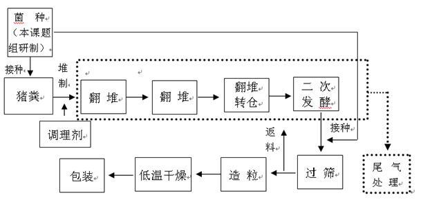 2.猪粪经处理后的技术规范达到国家《畜禽养殖业污染物排放标准》(GB 18596-2001),所生产的肥料产品达到《有机无机复混肥料》(GB18877-2002)、《有机肥料》(NY525-2002)标准、研制生产使用的有机物料除臭腐熟剂达到农业部《有机物料腐熟剂》(NY 609-2002)等标准。