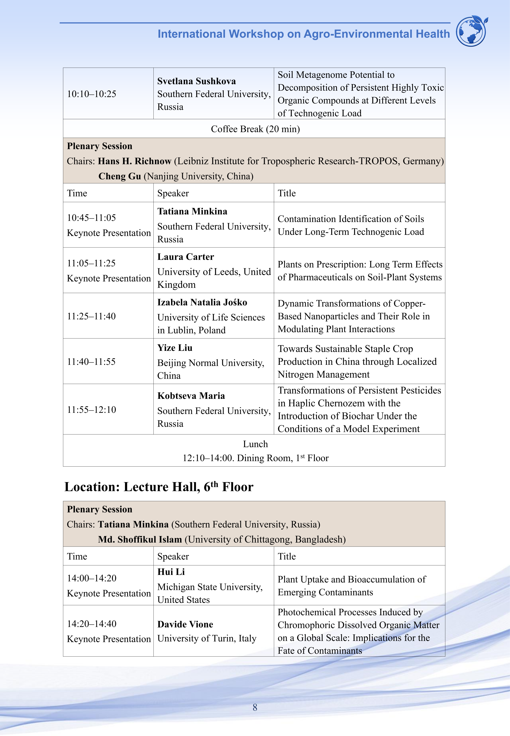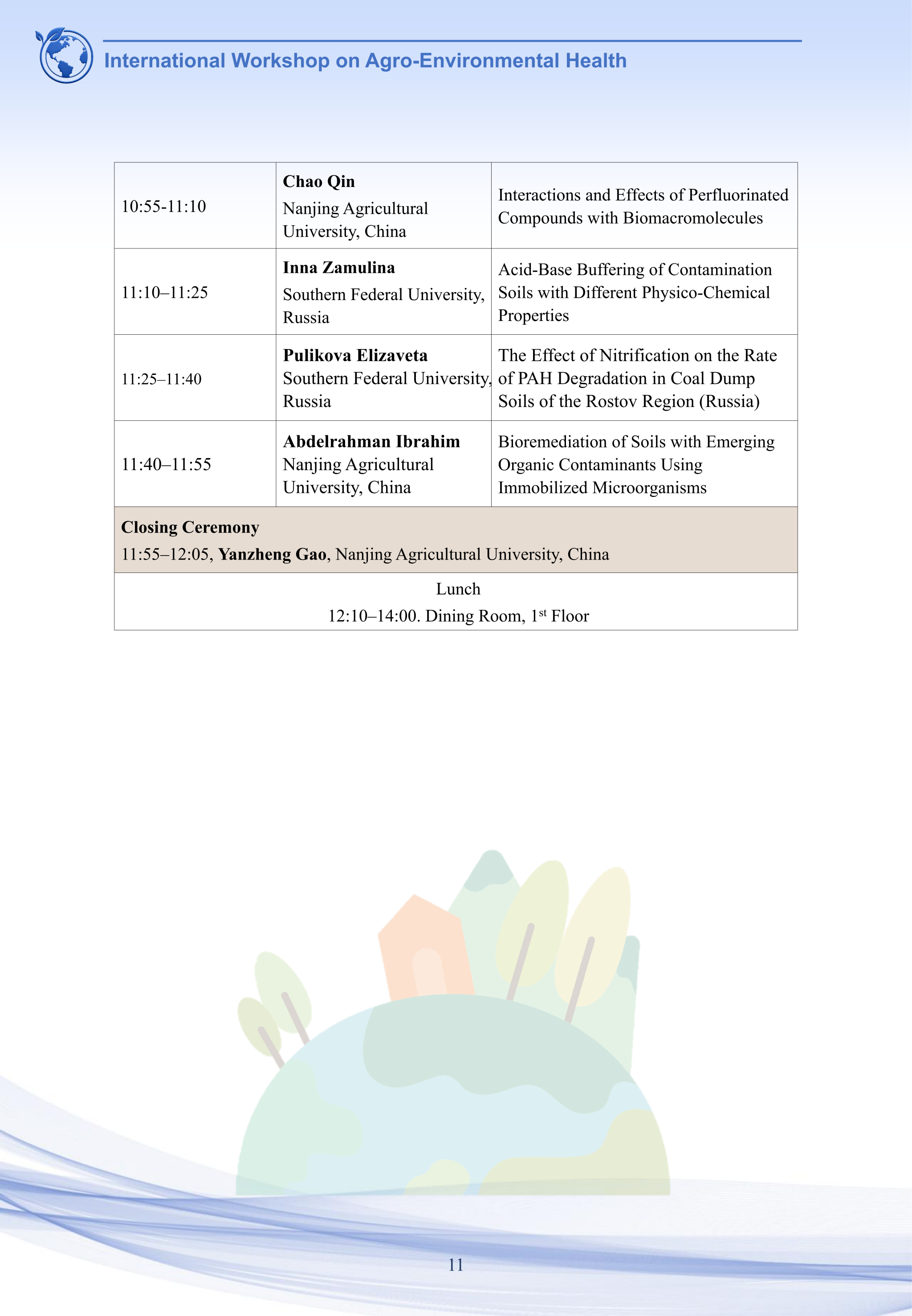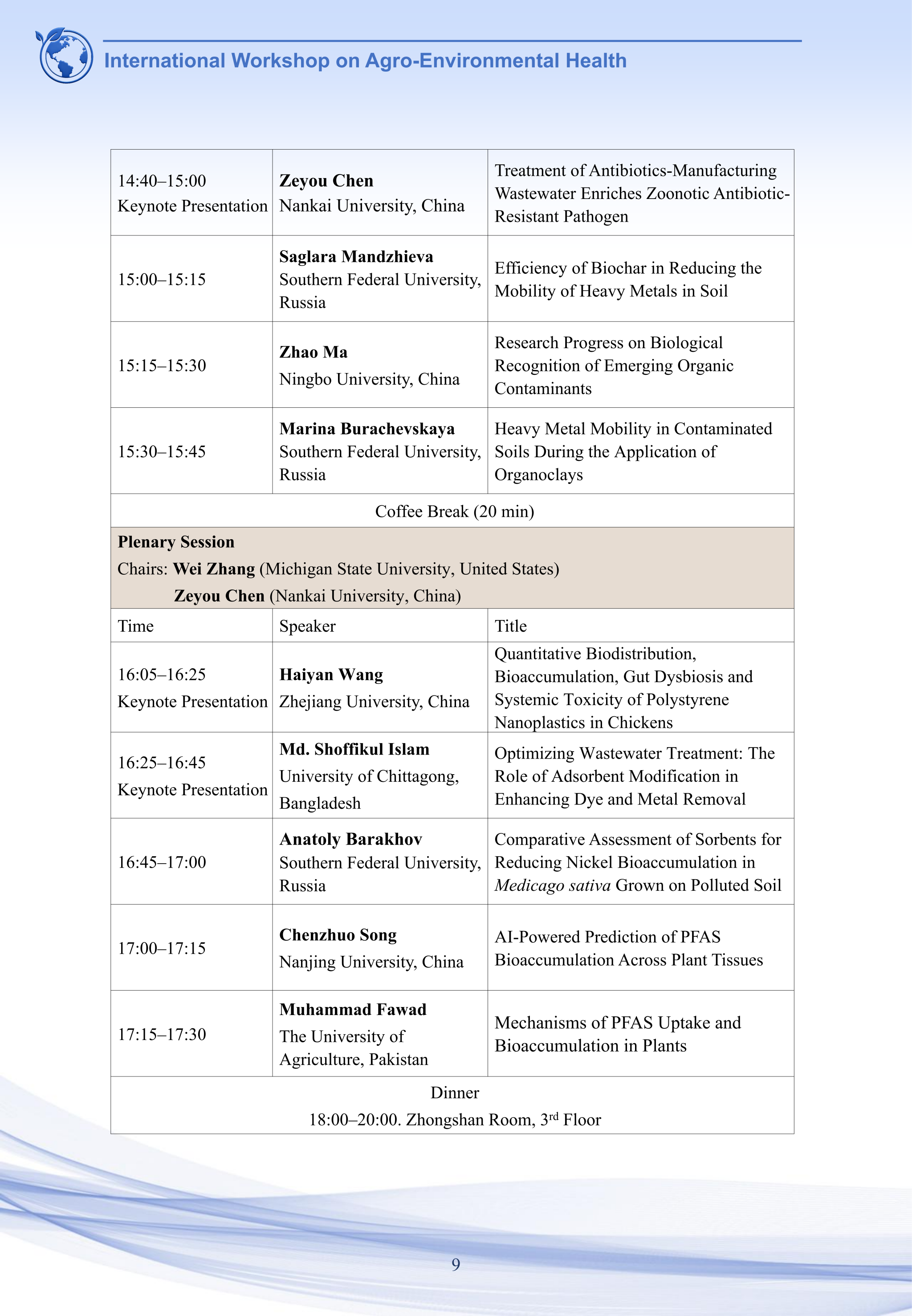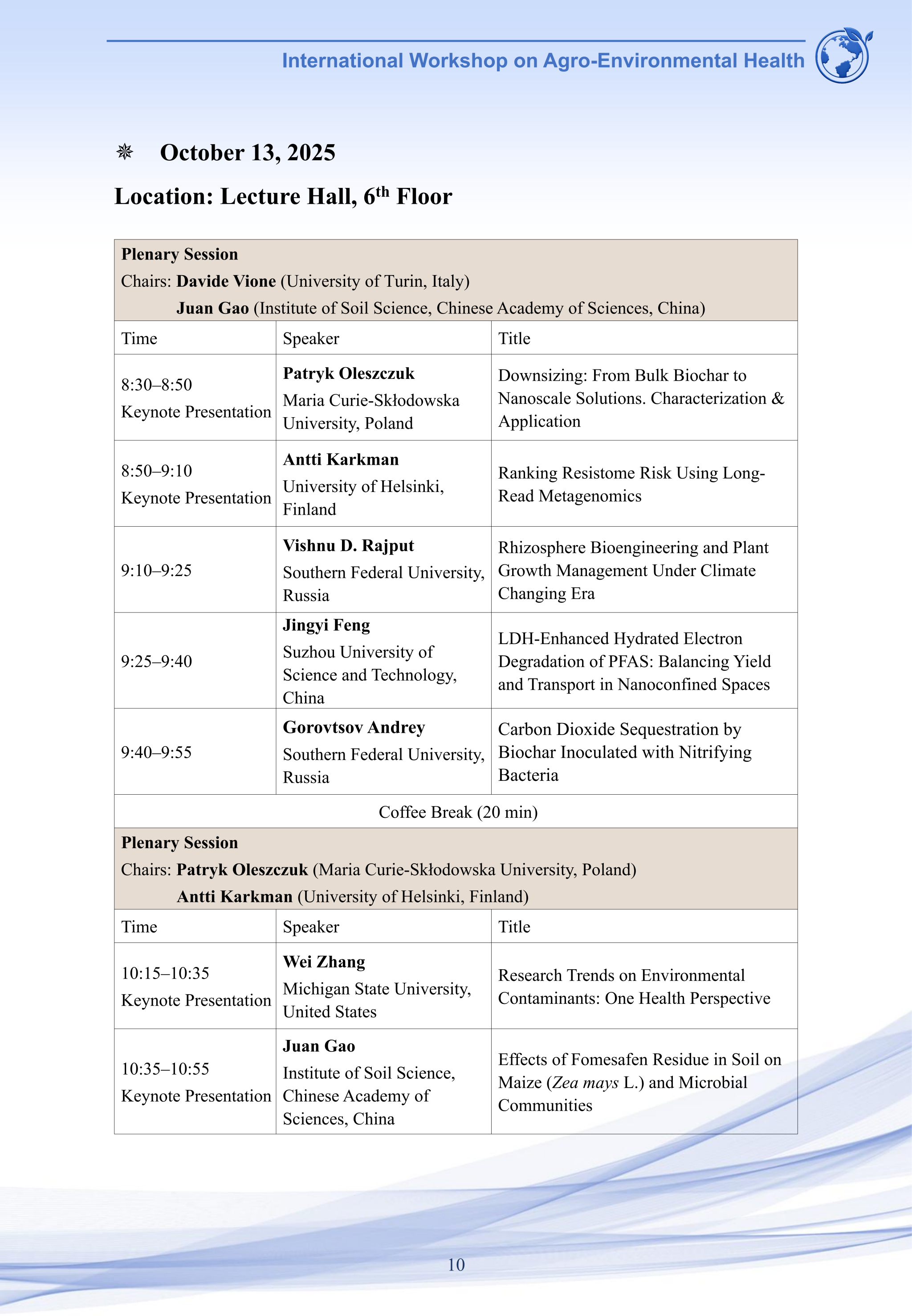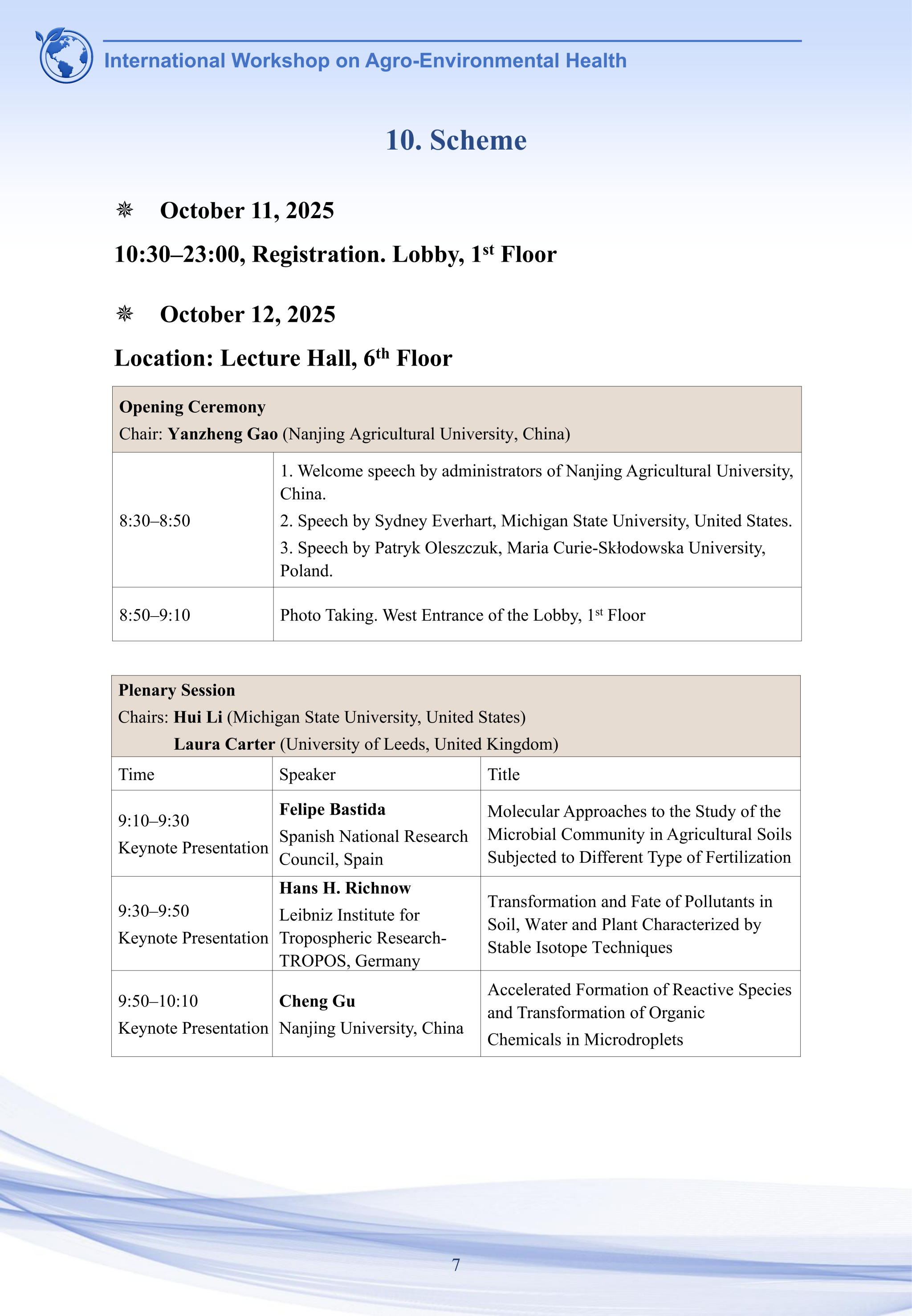 2025农业环境健康国际学术研讨会将于2025年10月11-14日在江苏省南京市ios版雷竞技官网学术交流中心(翰苑宾馆)召开,欢迎感兴趣的老师和学生参会交流。会议议程如下: