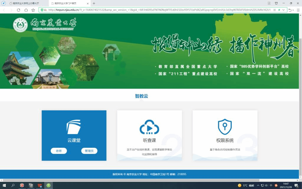 智慧教室录播资源平台限制校园网环境,如果您在校外,请先按照“网络信息服务”网“VPN系统使用说明https://net.njau.edu.cn/info/1187/3222.htm)”的说明,使用VPN连接校园网。