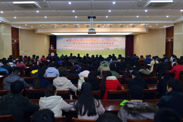 仪式结束后,我校组织了专题学术报告会,国内外知名科学家围绕大豆生物学与遗传育种等领域进行了探讨。