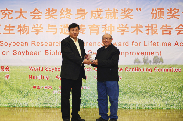12月6日下午,世界大豆研究大会奖终身成就奖颁奖仪式在我校金陵研究院报告厅举行。第十届世界大豆研究大会奖终身成就奖授予我校盖钧镒院士,以表彰其为世界大豆研究做出的突出贡献。