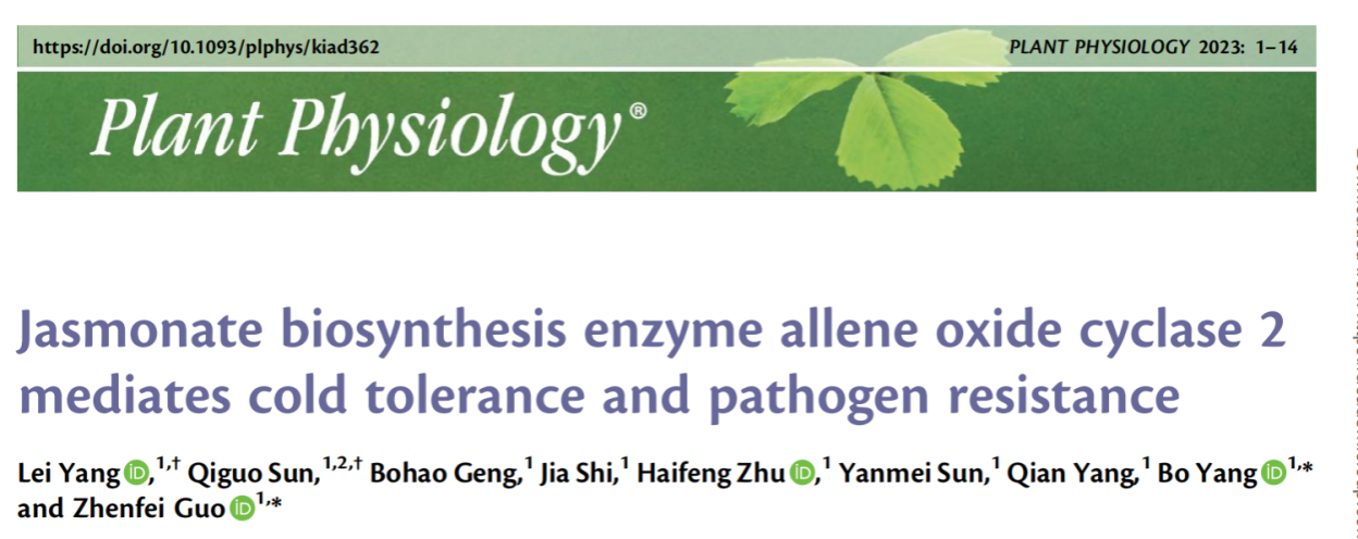 苜蓿是最重要的多年生优质豆科牧草,被誉为“牧草之王”,倒春寒及其随后发生的病害对紫花苜蓿生产造成严重危害。挖掘耐寒、抗病基因,提高苜蓿耐寒、抗病性,对于苜蓿生产非常重要。近日,ios版雷竞技官网草业学院郭振飞教授团队在Plant Physiology发表题为“Jasmonate biosynthesis enzyme allene oxide cyclase 2 mediates cold tolerance and pathogen resistance”(茉莉酸生物合成关键酶AOC2介导耐寒和抗病性),揭示了MfAOC2调控JA生成,介导苜蓿耐寒和抗病性的分子机制。