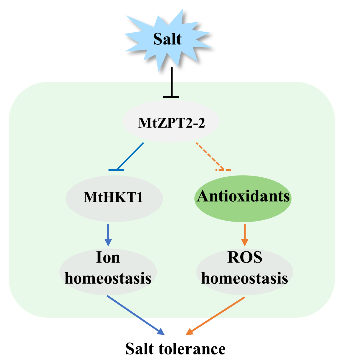 图1 MtZPT2-2调控蒺藜苜蓿耐盐性模式图